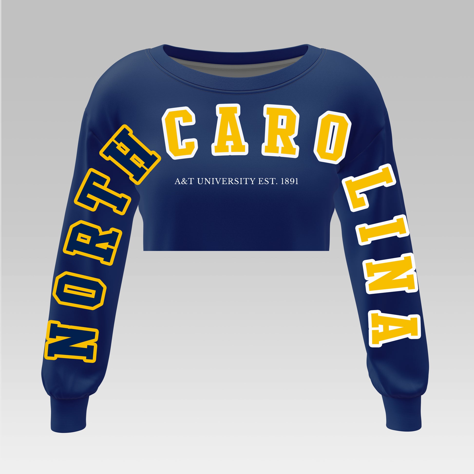 Calling all NORTH CAROLINA A&T BADDIES! This unisex fit blue long sleeve crop top sweatshirt is the perfect addition to your wardrobe. Stay warm and stylish while showing off your school pride. Made from high quality material, you'll rock this sweatshirt all year long.